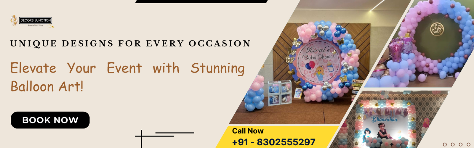 We pride ourselves on attention to detail and personalized service. Our expert team works closely with you to understand your vision and bring it to life with precision and creativity. Whether you need themed decorations, customized balloon designs, or comprehensive event styling, we have you covered.